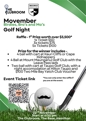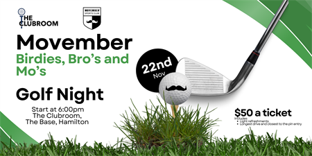 Birdies, Bros & Mo’s — Saturday 22 November | The Clubroom Hamilton, The Base | 6PM